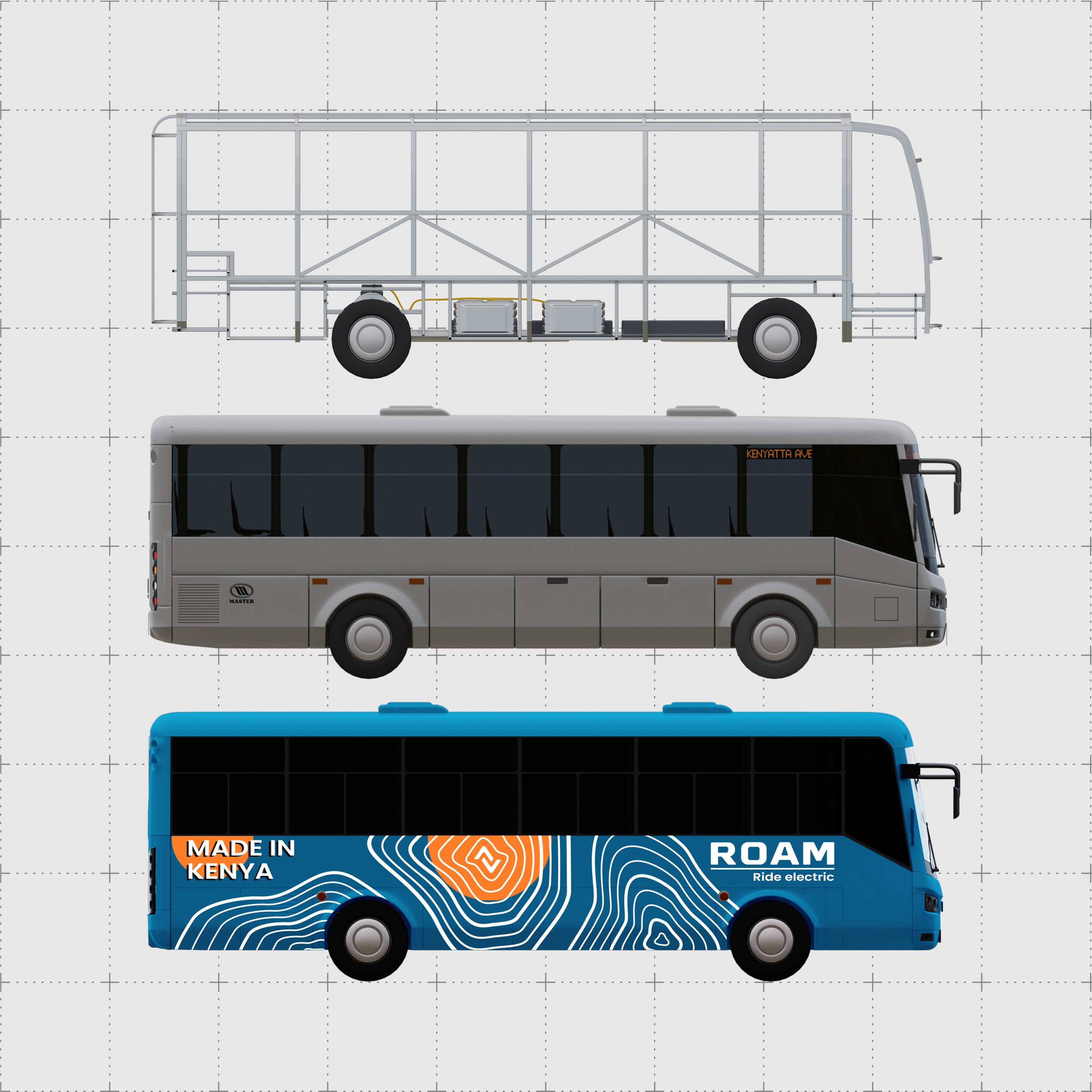 Roam Move is an all electric city bus designed to support cleaner, quieter public transport across African cities. The project focused on developing a vehicle that could handle demanding daily operation while presenting a modern, trustworthy design for both passengers and operators.